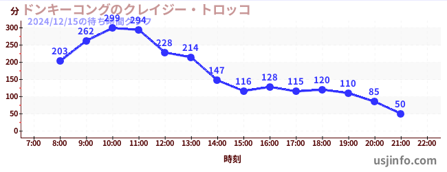 • ドンキーコングのクレイジー・トロッコ$B$N(B2024年12月15日の待ち時間