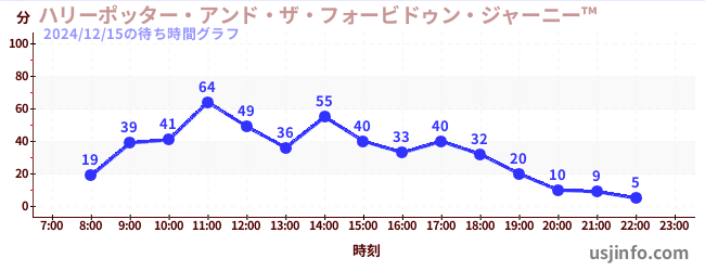 • ハリーポッター・アンド・ザ・フォービドゥン・ジャーニー™$B$N(B2024年12月15日の待ち時間