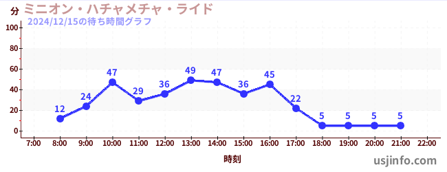 • ミニオン・ハチャメチャ・ライド$B$N(B2024年12月15日の待ち時間