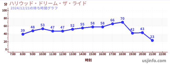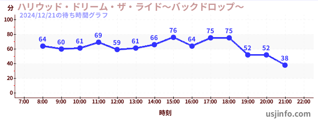 • ハリウッド・ドリーム・ザ・ライド〜バックドロップ〜$B$N(B2024年12月21日の待ち時間