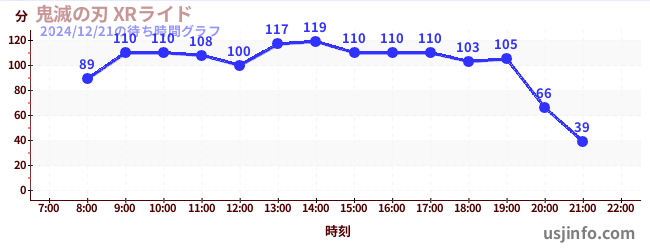 • 鬼滅の刃 XRライド$B$N(B2024年12月21日の待ち時間