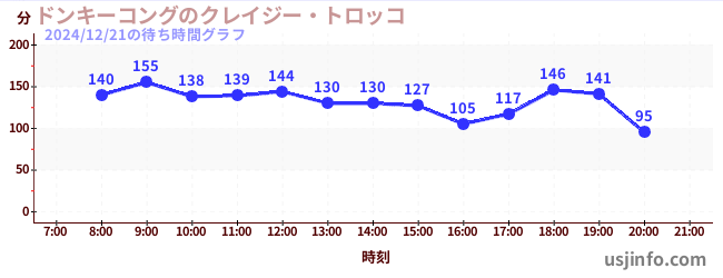 • ドンキーコングのクレイジー・トロッコ$B$N(B2024年12月21日の待ち時間