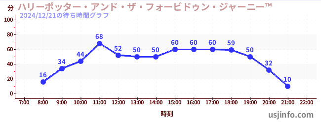 • ハリーポッター・アンド・ザ・フォービドゥン・ジャーニー™$B$N(B2024年12月21日の待ち時間