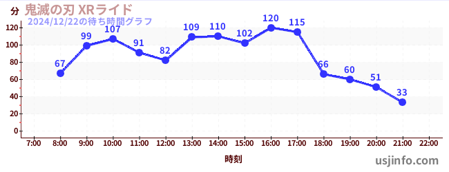 • 鬼滅の刃 XRライド$B$N(B2024年12月22日の待ち時間