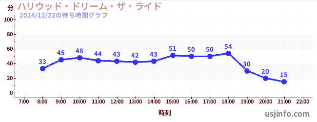 • ハリウッド・ドリーム・ザ・ライド〜バックドロップ〜$B$N(B2024年12月22日の待ち時間