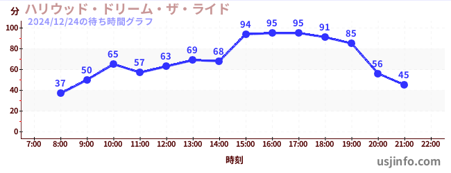 • ハリウッド・ドリーム・ザ・ライド$B$N(B2024年12月24日の待ち時間