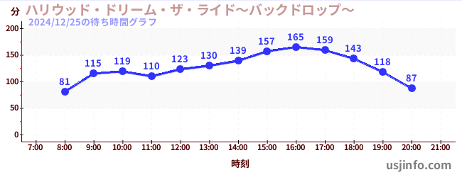 • ハリウッド・ドリーム・ザ・ライド〜バックドロップ〜$B$N(B2024年12月25日の待ち時間
