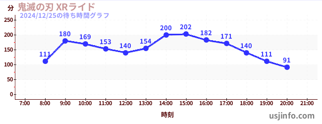 • 鬼滅の刃 XRライド$B$N(B2024年12月25日の待ち時間
