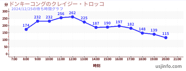• ドンキーコングのクレイジー・トロッコ$B$N(B2024年12月25日の待ち時間