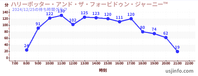 • ハリーポッター・アンド・ザ・フォービドゥン・ジャーニー™$B$N(B2024年12月25日の待ち時間