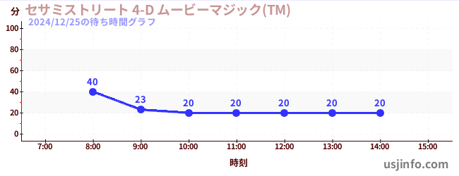 • セサミストリート 4-D ムービーマジック(TM)$B$N(B2024年12月25日の待ち時間