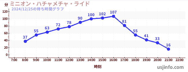 • ミニオン・ハチャメチャ・ライド$B$N(B2024年12月25日の待ち時間