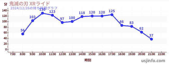 • 鬼滅の刃 XRライド$B$N(B2024年12月26日の待ち時間