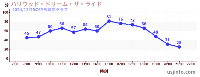 • ハリウッド・ドリーム・ザ・ライド$B$N(B2024年12月26日の待ち時間