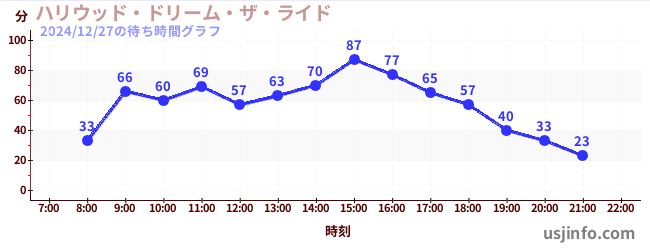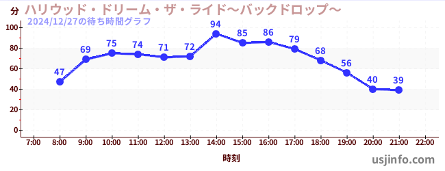 • ハリウッド・ドリーム・ザ・ライド〜バックドロップ〜$B$N(B2024年12月27日の待ち時間