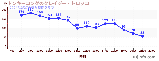 • ドンキーコングのクレイジー・トロッコ$B$N(B2024年12月27日の待ち時間