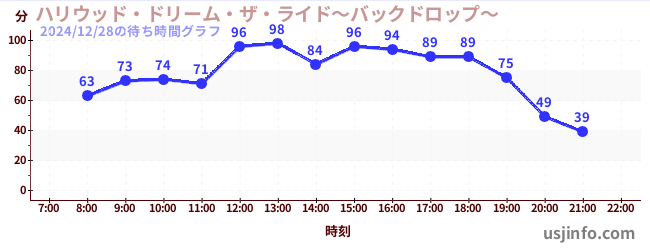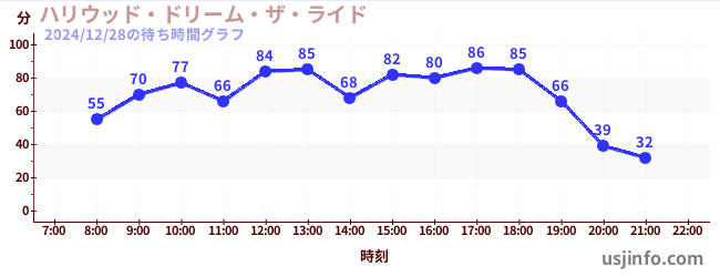 • ハリウッド・ドリーム・ザ・ライド〜バックドロップ〜$B$N(B2024年12月28日の待ち時間