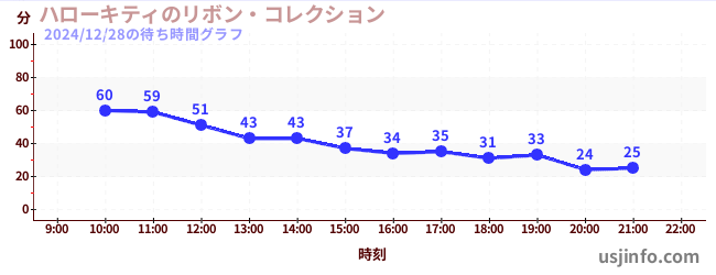• ハローキティのリボン・コレクション$B$N(B2024年12月28日の待ち時間