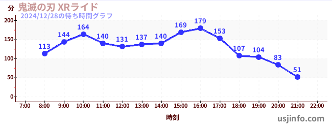 • 鬼滅の刃 XRライド$B$N(B2024年12月28日の待ち時間