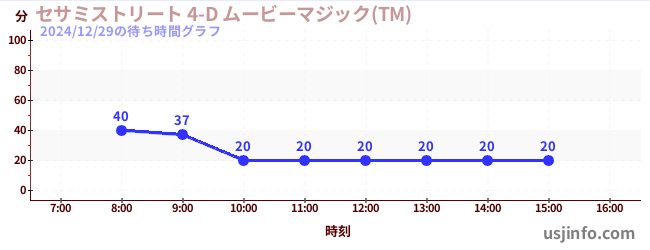 • セサミストリート 4-D ムービーマジック(TM)$B$N(B2024年12月29日の待ち時間