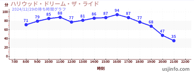 • ハリウッド・ドリーム・ザ・ライド〜バックドロップ〜$B$N(B2024年12月29日の待ち時間