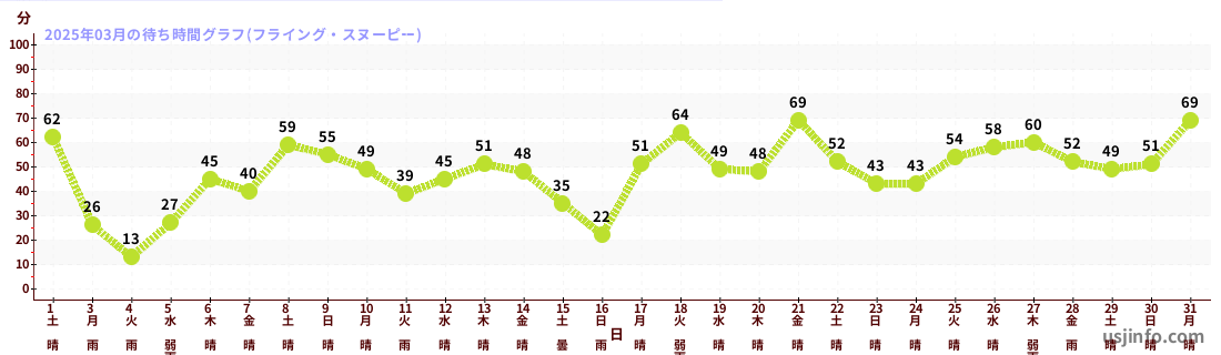 • フライング・スヌーピー$B$N(B2025年03月01日のの一日平均待ち時間