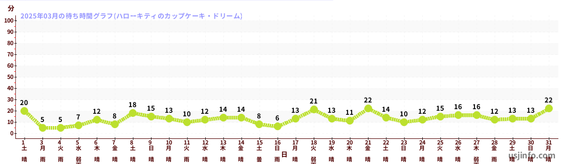 • ハローキティのカップケーキ・ドリーム$B$N(B2025年03月01日のの一日平均待ち時間