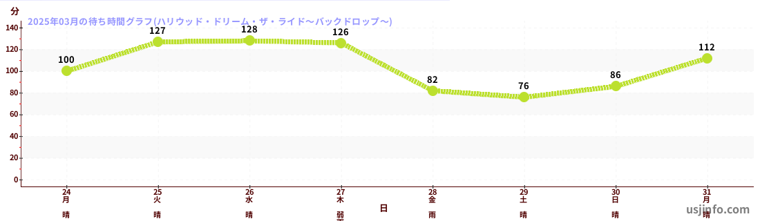 • ハリウッド・ドリーム・ザ・ライド〜バックドロップ〜$B$N(B2025年03月01日のの一日平均待ち時間