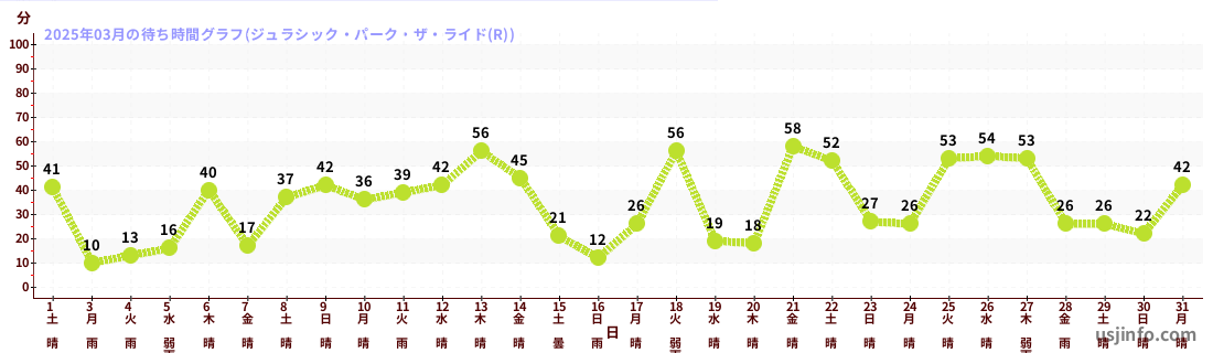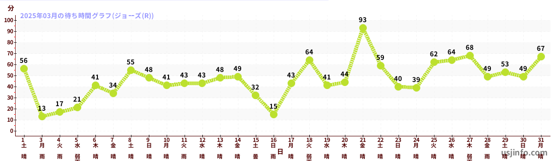 • ジョーズ(R)$B$N(B2025年03月01日のの一日平均待ち時間