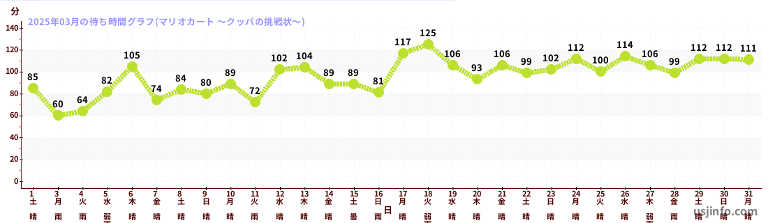 • マリオカート ~クッパの挑戦状~$B$N(B2025年03月01日のの一日平均待ち時間