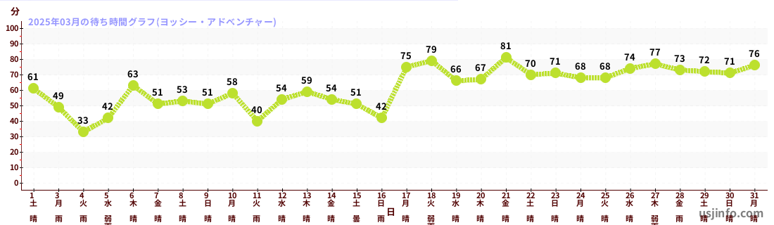 • ヨッシー・アドベンチャー$B$N(B2025年03月01日のの一日平均待ち時間