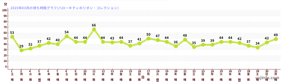 • ハローキティのリボン・コレクション$B$N(B2025年03月01日のの一日平均待ち時間