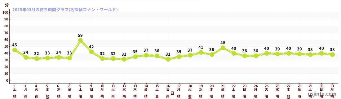 • 名探偵コナン・ワールド$B$N(B2025年03月01日のの一日平均待ち時間