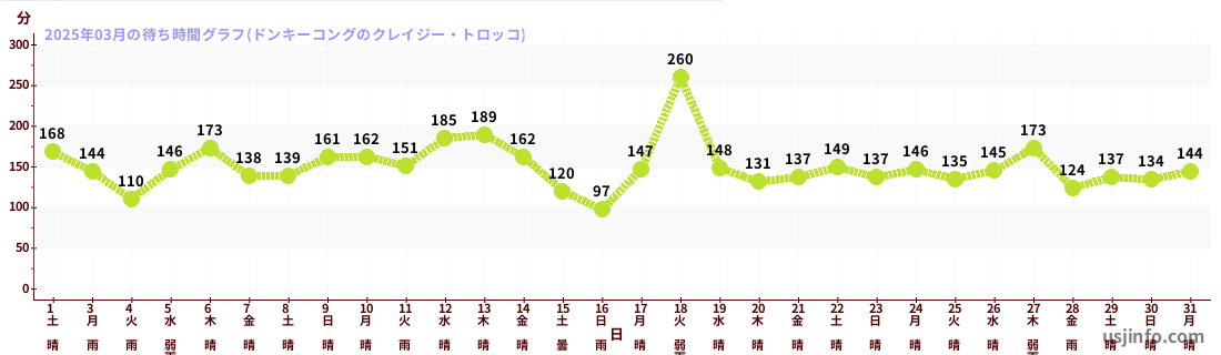 • ドンキーコングのクレイジー・トロッコ$B$N(B2025年03月01日のの一日平均待ち時間