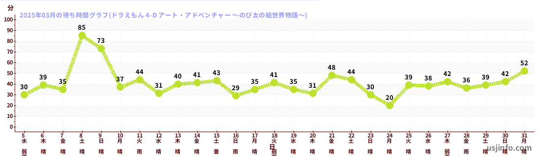 • ドラえもん 4-D アート・アドベンチャー ~のび太の絵世界物語~$B$N(B2025年03月01日のの一日平均待ち時間