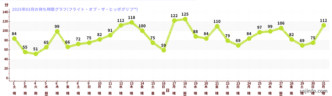 • フライト・オブ・ザ・ヒッポグリフ™$B$N(B2025年03月01日のの一日平均待ち時間
