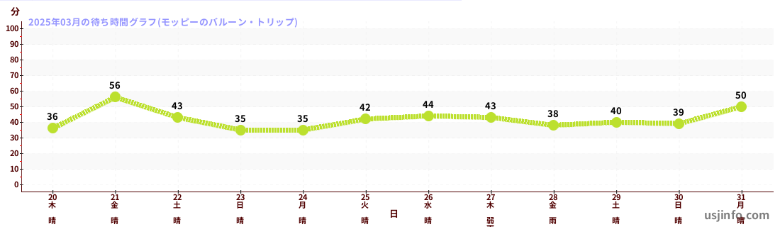 • モッピーのバルーン・トリップ$B$N(B2025年03月01日のの一日平均待ち時間