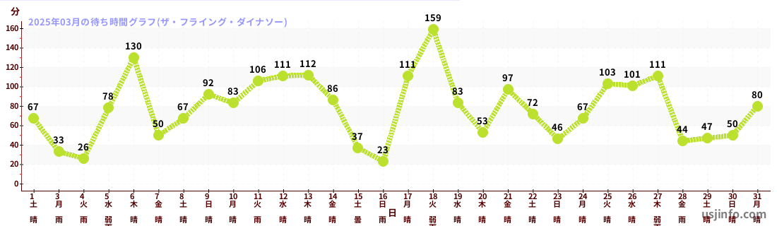 • ザ・フライング・ダイナソー$B$N(B2025年03月01日のの一日平均待ち時間