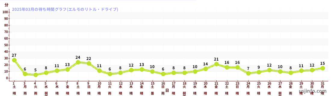• エルモのリトル・ドライブ$B$N(B2025年03月01日のの一日平均待ち時間