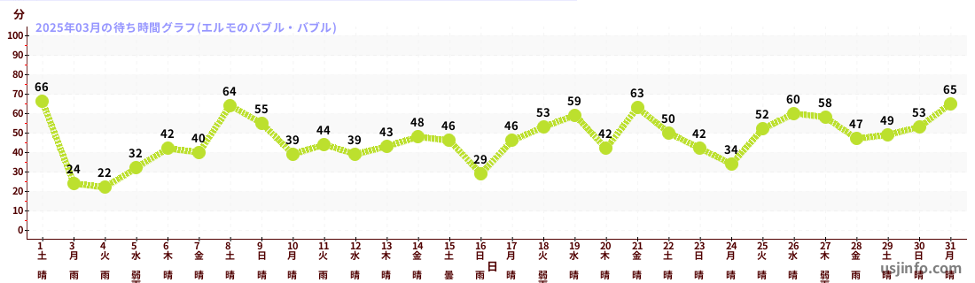 • エルモのバブル・バブル$B$N(B2025年03月01日のの一日平均待ち時間