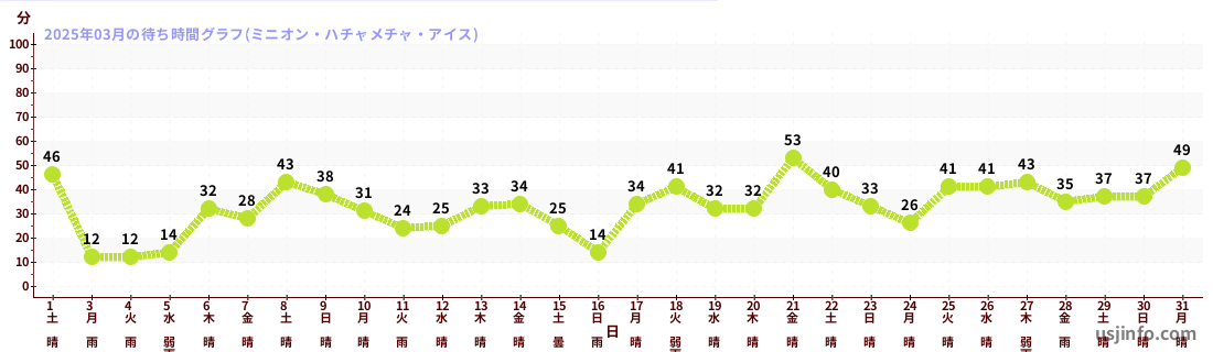 • ミニオン・ハチャメチャ・アイス$B$N(B2025年03月01日のの一日平均待ち時間