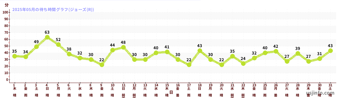 • ジョーズ(R)$B$N(B2025年05月01日のの一日平均待ち時間