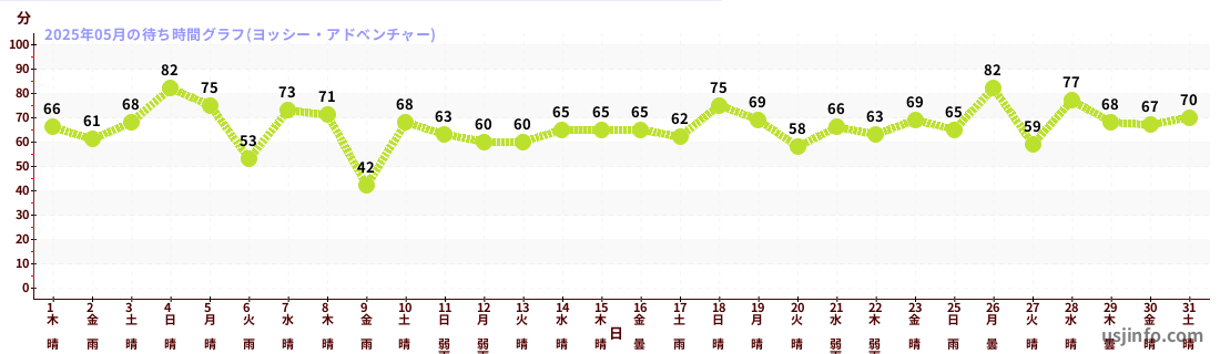 • ヨッシー・アドベンチャー$B$N(B2025年05月01日のの一日平均待ち時間
