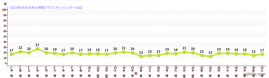 • オリバンダーの店$B$N(B2025年05月01日のの一日平均待ち時間