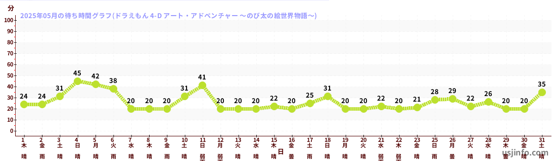 • ドラえもん 4-D アート・アドベンチャー ~のび太の絵世界物語~$B$N(B2025年05月01日のの一日平均待ち時間
