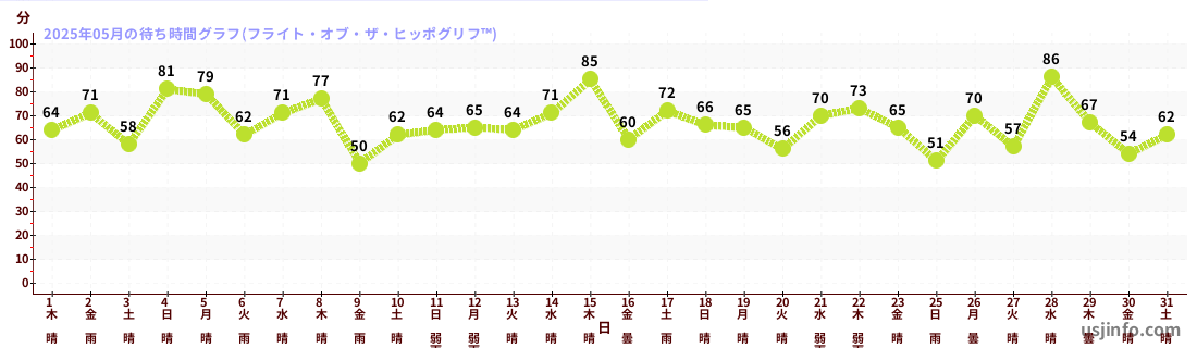 • フライト・オブ・ザ・ヒッポグリフ™$B$N(B2025年05月01日のの一日平均待ち時間