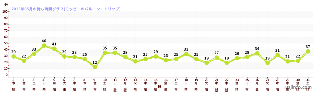• モッピーのバルーン・トリップ$B$N(B2025年05月01日のの一日平均待ち時間