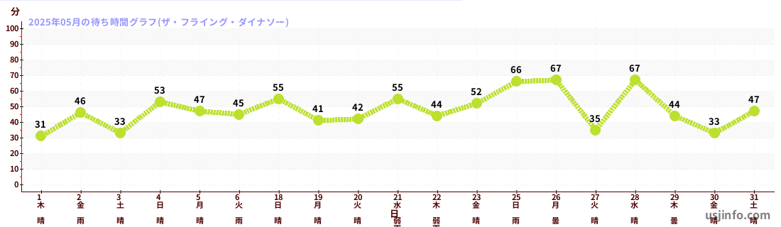 • ザ・フライング・ダイナソー$B$N(B2025年05月01日のの一日平均待ち時間