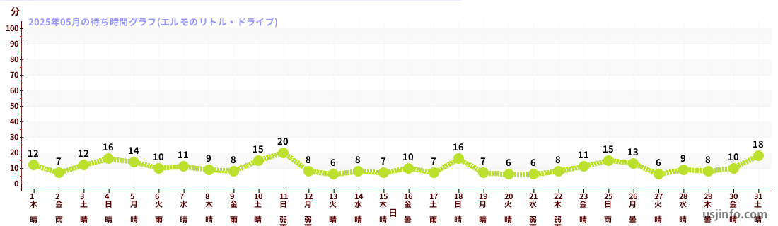• エルモのリトル・ドライブ$B$N(B2025年05月01日のの一日平均待ち時間