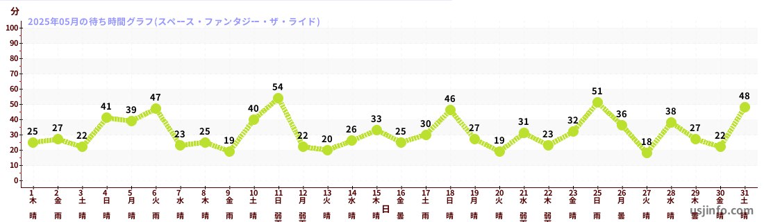 • スペース・ファンタジー・ザ・ライド$B$N(B2025年05月01日のの一日平均待ち時間